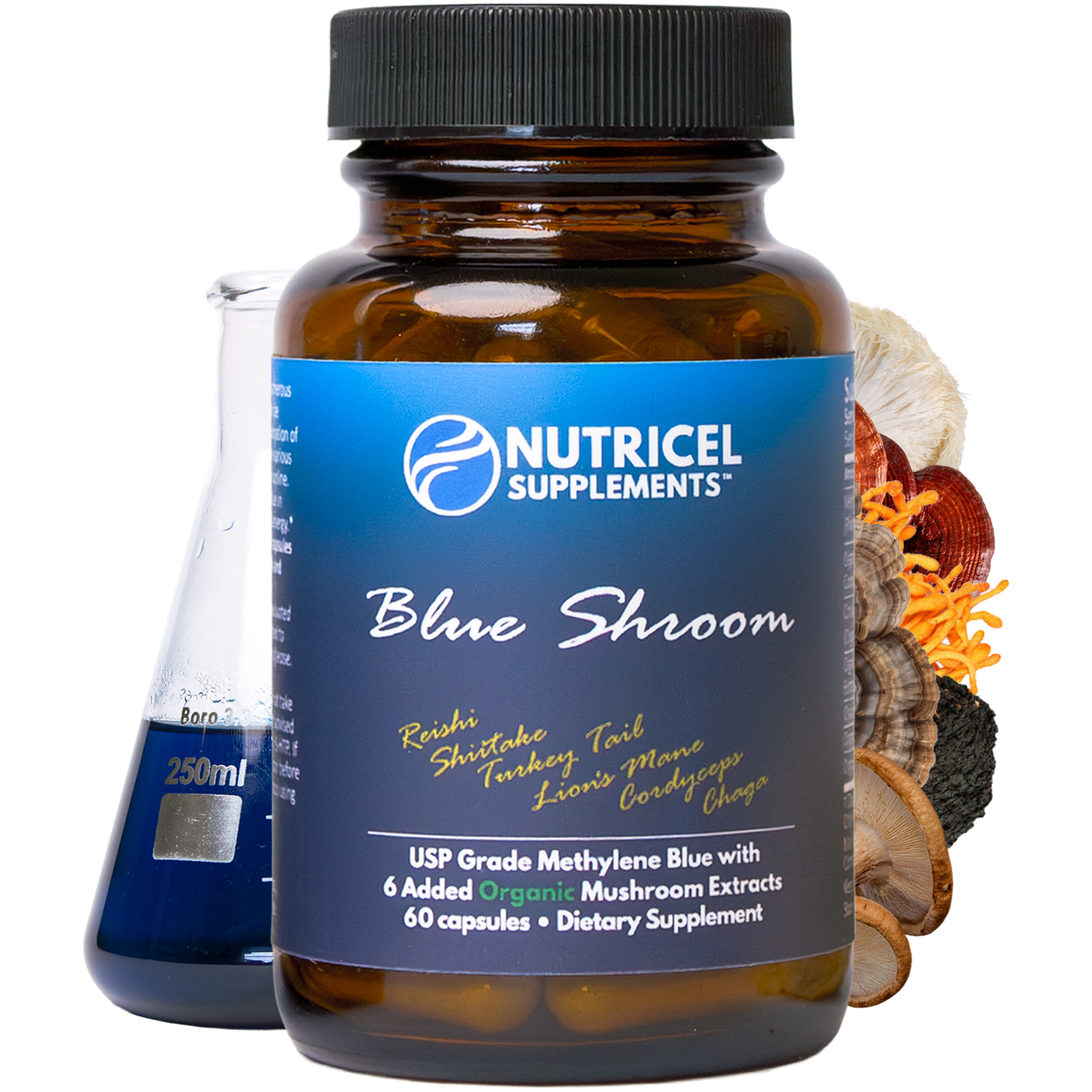 Methylene blue with functional mushrooms for cognitive clarity.